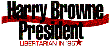Harry and Jo ended up receiving 470,818 votes, or 0.5% of the total. This was the best Libertarian showing since 1980, but was somewhat disappointing. Ralph Nader drew 580,627 votes, many of which may have gone Libertarian if such a well known figure had not attracted many protest votes, especially in California. With so many candidates on most ballots, and with Ross Perot and Nader both in the race, we must assume that the votes Harry got were from people who knew what he was all about. If only a fraction of those people were to actually join the Party, the next Libertarian candidate will be in an immensely stronger position.