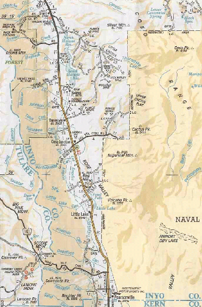 It was some years before I returned to the area. Then my wife and I drove up to Bishop for a couple of days in March/April 1993. Passing through Little Lake, I noticed several things. One was that the road, now a four lane divided highway, bypassed the town.