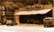 Whole Foods Market. The store was wiped out. They cleaned up and rebuilt, even surviving a couple more floods, though not as bad, later. When I was in Austin in 1993 the store still had a display on the outside, showing how high the water had risen in the different floods. Soon they were opening new stores. Later they were expanding outside of Texas, buying out some other health food chains. Now, after they bought the Mrs. Gooch's stores in California in 1993, they even have a store about a mile from where I live in Los Angeles. Kind of fascinating, to be there when the business was nearly strangled in the cradle, then have it spread all over the country. Since one of the owners is a Libertarian, it is fitting that the story should end up being like something out of Ayn Rand. On my last trip to Austin, in 2000, I discovered that the original Whole Foods Market had moved down the street, to higher ground, in a brand new building. The original location now has a clothing store.