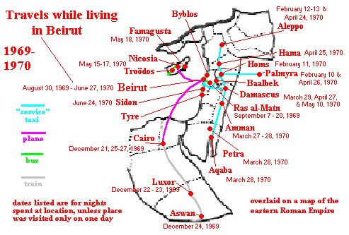 The following maps give some idea of the ground I covered while living in Beirut, Lebanon, during the 1969-1970 academic year, my Junior Year at UCLA, on the University of California "Education Abroad" program at the American University of Beirut (AUB).