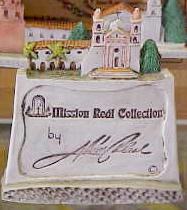 as the "Mission Reál Collection." Cabral also does a series of miniatures of the Missions, the Mission de Oro Collection. Now, I had always liked Ian Reader's description in his Religion in Contemporary Japan [University of Hawaii Press, 1991] of pilgrimage customs in Japan. A simple New Years Day pilgrimage in Tokyo involved walking to successive temples of each of the seven lucky gods. At each temple, a little figure of each god could be purchased to put in a boat designed to hold all of them. So at the end of day, one has a complete set of gods bringing good fortune for the New Year in their traditional treasure boat. No one seems to have ever thought of the California Missions as constituting a pilgrimage route, and no arrangements or customs exist for anything of the sort, but seeing the little models of the Missions, it immediately struck me that something like that would do.