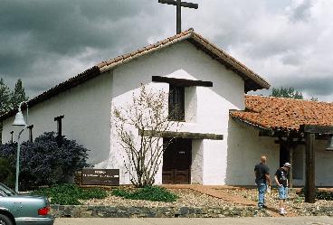 Mission Blvd. in Fremont, which is where the Mission San José actually is. The Mission is younger than the City of San Jose, and was placed well away from it -- as was often done to keep mission Indians away from Spanish soldiers and civilians. As in Santa Cruz, the old church was replaced long ago with a new one not in the Mission style. The new church, however, was wood, and when it was decided to reconstruct it in the old style, the church was simply jacked up and moved to Burlingame. Meanwhile, for many years all that remained of the old Mission buildings was a long adobe, often called the convento,
