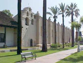 even though it was not a convent in the familiar sense (i.e. for nuns). By 1985, an adobe (but earthquake reinforced) church had been rebuilt. Now this is often seen in pictures of the Mission. The church is a few yards distant from the convento, and plans are now apparently in the works to fill in the space, as it originally was, with an extension of the long adobe.