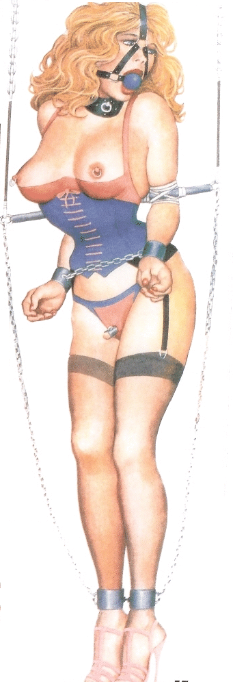 This is a characteristic article from Forced Womanhood magazine [#25, 1999]. The sex slavery theme here seems to be in line with one aspect of the thesis of John Norman that women are natural slaves. Thus, a man turned into a woman becomes a proper slave (to do housework, etc., as well as be a sex slave). However, here real women are nothing of the sort. This is close to the furthest limit of femdom, since the women turn to lesbianism and the man is emasculated, though without actually being castrated. It is an important part of this kind of pornotopia, however, that there be real males out there, since the shemale is not properly feminized or humiliated unless forced to service real males.