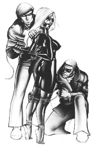 The rest of the weekend was glorious. I went slow, not wanting to scare her. That first morning of her slavery I collared her with my own collar, replacing that of whatever pimplefaced geek lurked in her past. I cuffed her hands and clipped them to the back of her collar so that her back arched when she moved and her firm young breasts were presented. I leashed her to a ring in the wall and brought her to orgasm with my hands through her bodysuit and my mouth on her nipples. Then I unclipped her hands and leash, removed her bodysuit, and took her tied spread-eagle on my bed. During her second orgasm I had to put my hand over her mouth she was so loud, and I resolved to gag her from then on.