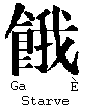 (餓), which means "hungry" or "starve." This is also the character we find in