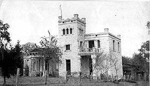 Until the end of his life, Houston liked to be shown in his Cherokee blanket. Thus we see him photographed as an old man above and even in the political cartoon from Harper's Weekly at left. The blanket is still there on the statue by the great German sculptress Elisabet Ney, done by her together with one of Stephen F. Austin to represent the State of Texas in the Capitol of the United States of America. Copies also stand in the Capitol of the State of Texas, near the famous painting of the Surrender of Santa Anna, where we see Houston, wounded, propped up against a tree. Ney's home and studio still stand in Austin, containing many of the original sculptures that she had done in Germany and later brought over to Texas. Her work included busts of Otto von Bismark, Giuseppe Garibaldi, Arthur Schopenhauer, King Ludwig II "the Mad" of Bavaria, William Jennings Bryan, and many others. Texas history certainly has its colorful and outrageous aspects. One of my favorites is the story of Governors "Ma" and "Pa" Ferguson. "Pa" Ferguson, James E., was impeached and removed from office in 1917. Later his wife, Miriam A., "Ma" Ferguson, ran for Governor herself and won. She returned again in 1933, just in time, we might remember, for the end of Prohibition. There are thus two portraits of Fergusons in the Rotuna of the Texas State Capitol, but both of them are of Miriam, for her non-consecutive terms. James, impeached, is not shown. They are buried together in the Texas State Cemetry in Austin.